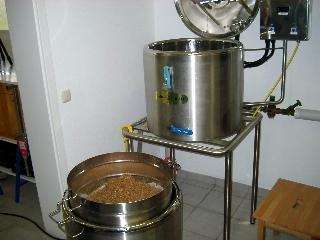 Für das Maischen hat unser Sudkessel eine elektrische Heizung (4,2kW), ein Rührwerk und eine Temperaturregelung.